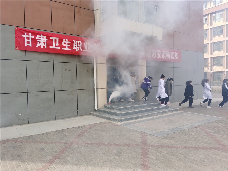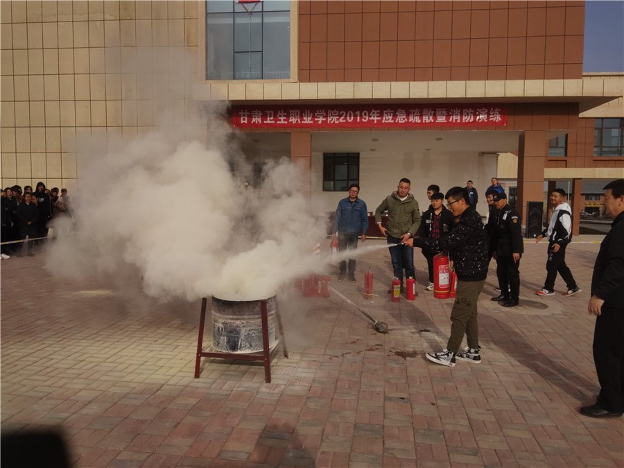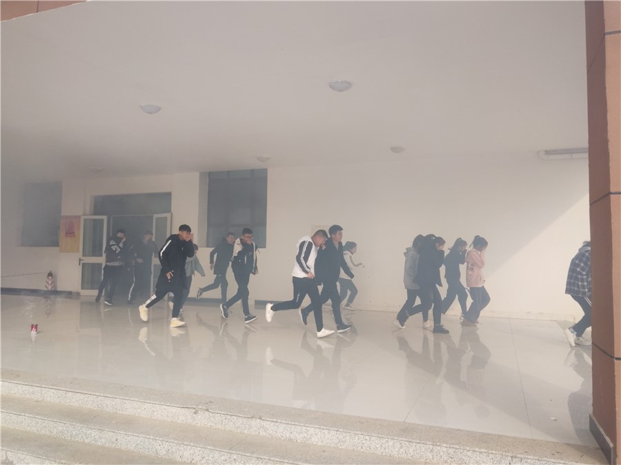 随着毕效武副校长一声令下,各项演练活动有序展开。演练内容由学生逃生自救疏散、消防设备应急保障、灭火器材使用方法、灭火器材体验操作等项目构成。其中学生逃生自救疏散演练项目比较真实地模拟了火灾突发现场,同学们用湿毛巾、衣袖捂住口鼻,由教学楼及公寓各楼层的辅导员班主任、安全员迅速组织疏散。整个疏散过程紧张有序、实用性强。
