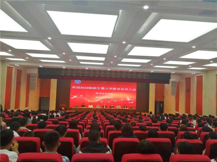 9月6日上午,天高气朗,阳光灿烂,在喜庆而祥和的校园氛围中,医学技术学院欢迎2019级新生暨入学教育动员大会在学校多功能厅隆重举行,学生工作处处长张绍进、团委书记衡冰、学院领导、全体辅导员(班主任)及近1000名新生参加了会议,会议由学院党总支书记王义安主持。