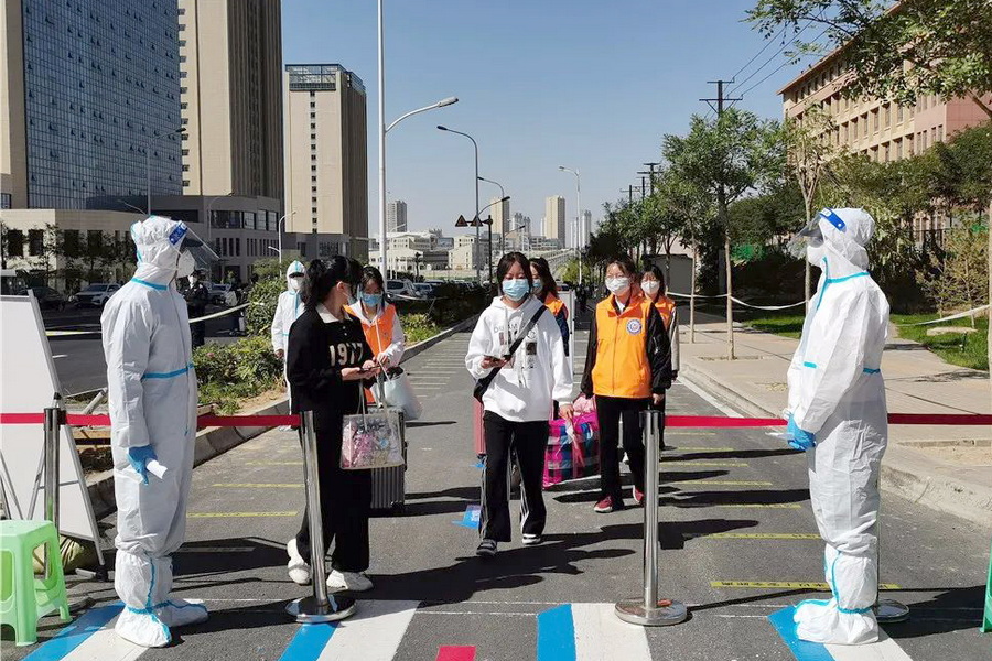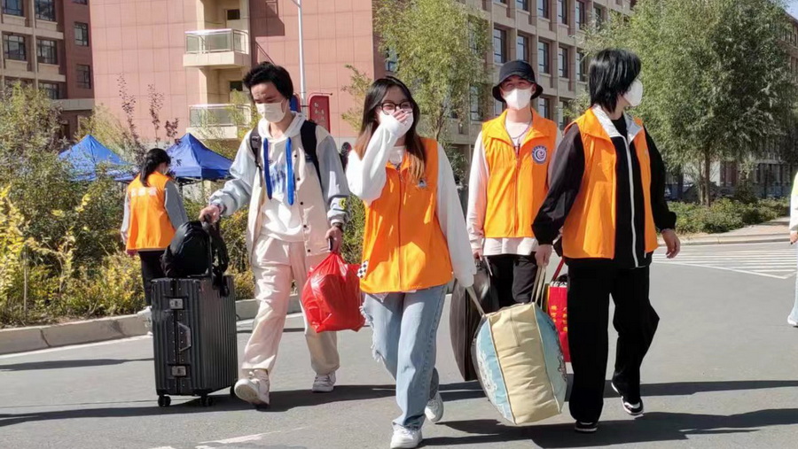 迎新期间,学生会志愿者每天早早地到达指定地点,做好迎新准备工作,“两站一场“处处闪现着他们忙碌的身影。新同学一下车,各接站点志愿者们立刻微笑着迎上去,查验健康码、行程码,配合检测人员指导新同学做抗原检测。查验结束后,志愿者们接过新同学的行李,帮助新生有序坐上校车,确保所有新生到达兰州后能够一站式返校。校园里更是随处可见志愿者忙碌的身影,他们不厌其烦地为新生们答疑解惑,帮助新生消除陌生感,尽快熟悉校园环境。在学校门口,新生在志愿者们的悉心引导下,有条不紊的通过健康码、行程码与核酸报告查验陆续进入校园,为全校师生筑起一道安全屏障;在校内各服务点,志愿者们主动帮助新生搬运行李、指导新生办理入学手续,引导新生入住宿舍,帮助新生顺利开启校园新生活。志愿者们真诚奉献,主动担当,为新生提供了高效、热情的服务,让学生暖心,也让家长放心。