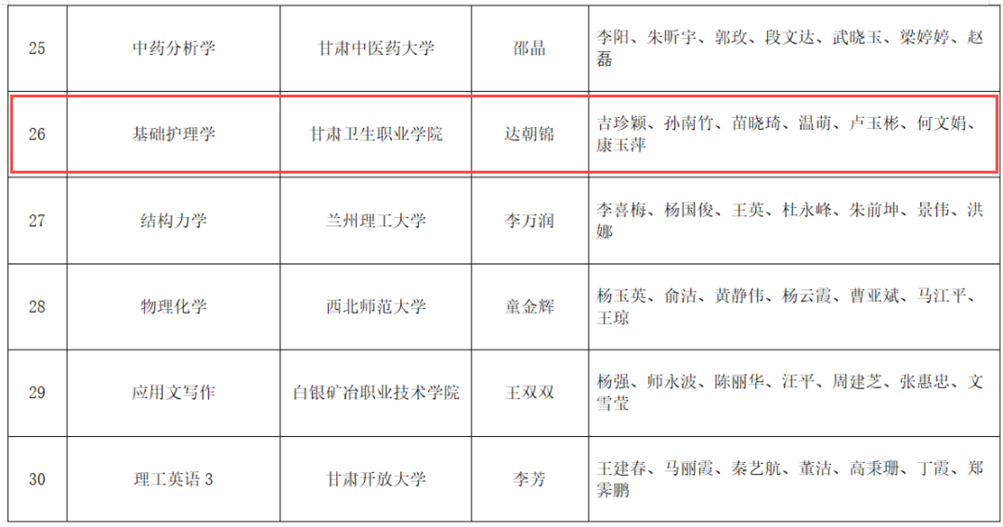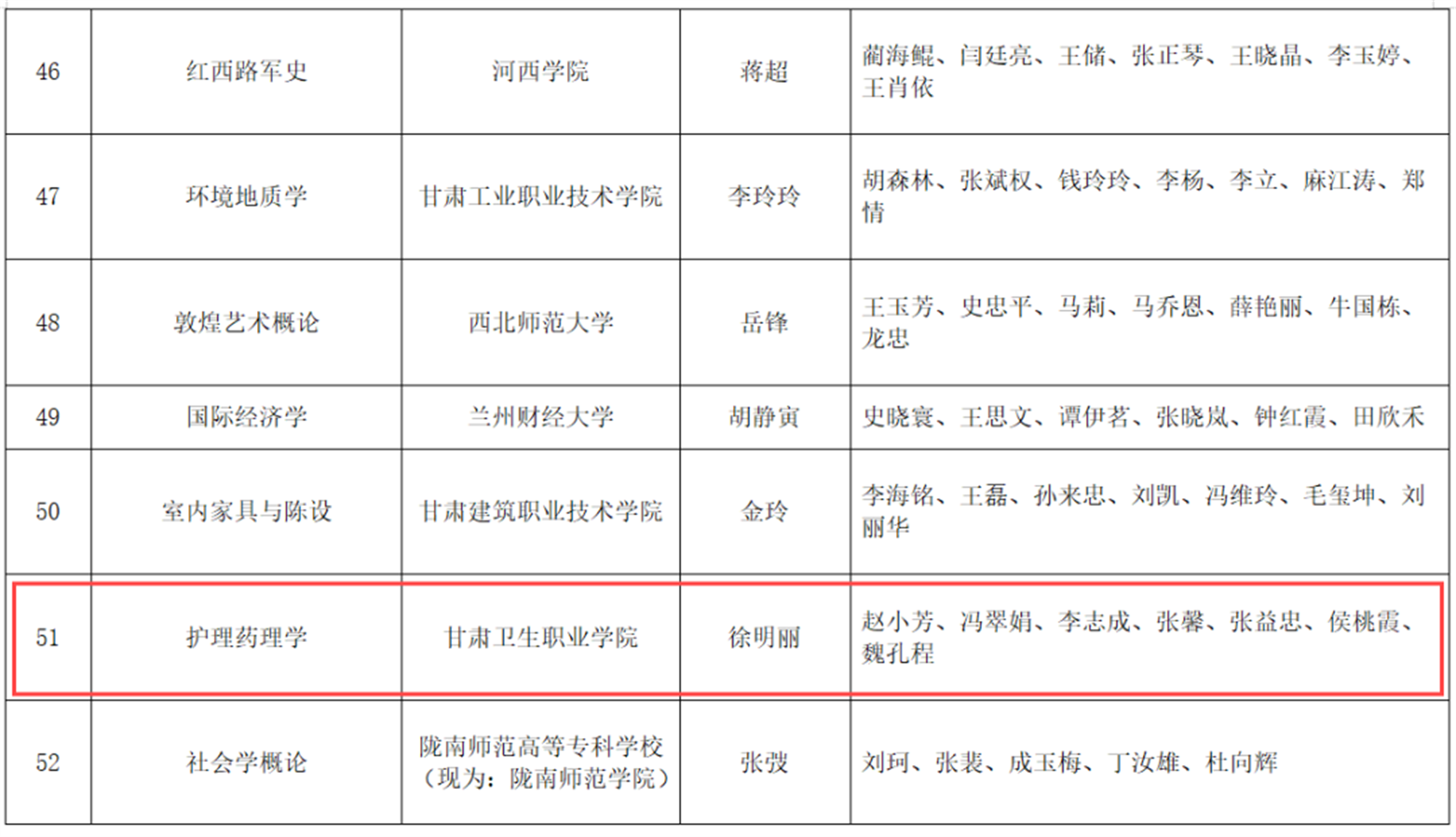 近日,甘肃省教育厅印发《关于公布第二批甘肃省高校课程思政示范项目名单的通知》(甘教高函〔2024〕16 号),威廉希尔官网推荐申报的药学和助产2个专业均获批甘肃省课程思政示范专业,由达朝锦老师领衔的《基础护理学》和徐明丽老师领衔的《护理药理学》2门课程及其教学团队分别获批甘肃省课程思政示范课程、教学名师和团队。