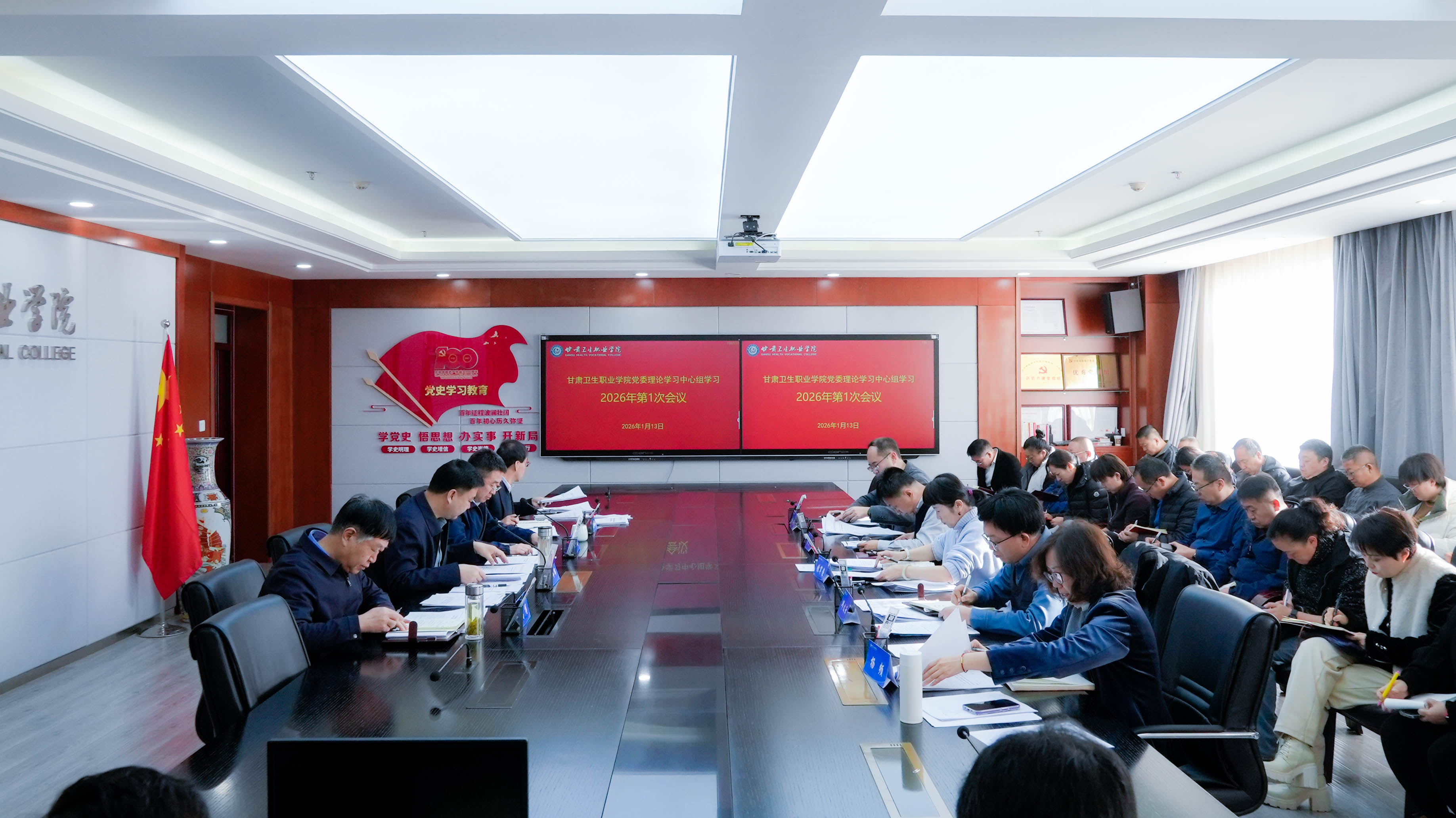 1月13日,学校党委理论学习中心组在勤笃楼717会议室举行2026年开年首次集体学习,围绕谋深谋实“十五五”学院高质量发展进行交流研讨,为开好2025年度民主生活会打牢思想基础。