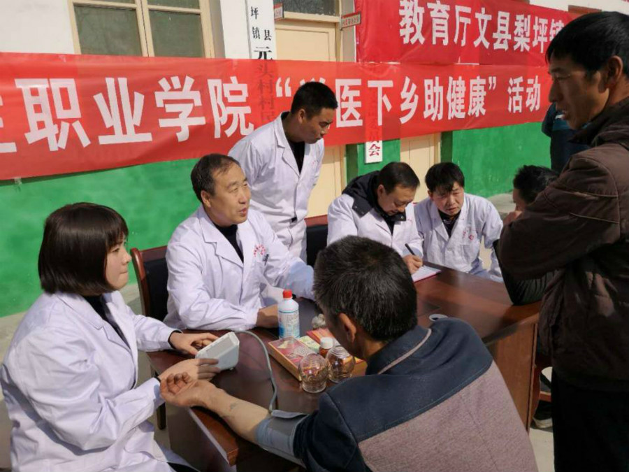 接着学院团委按省团委相关文件要求,为做好贫困村民温暖安全过冬工作,现场为127户村民捐赠了崭新的棉衣和围巾,离退休管理处为每户村民发放了米、油等生活物资,门诊部工作人员为村民们测量血压、举行义诊活动,并和当地村医进行座谈,现场进行了针灸、拔罐等简易实用的医疗技术培训。