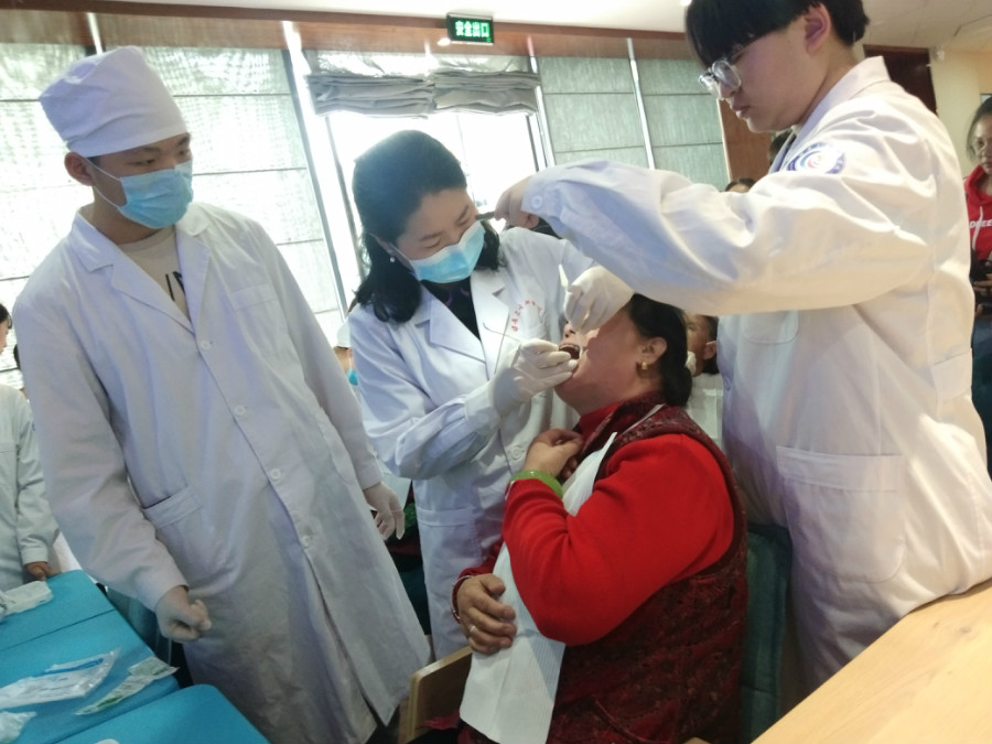 9月19日下午,同学们来到西岔文曲社区,为社区老年人开展了爱牙日主题宣讲及义诊活动。活动中,罗亚莉老师对义齿的类型及保养方法做了重点的介绍,叮嘱老人们为了全身健康要爱护牙齿,及时镶牙;张萌萌同学进行了题为《关爱您的牙齿》的口腔健康宣讲;随后根据老人们的需求,师生进行了免费口腔健康检查,答疑解惑,指导刷牙及牙线使用等,有效提高了参与者的口腔健康保健知识。