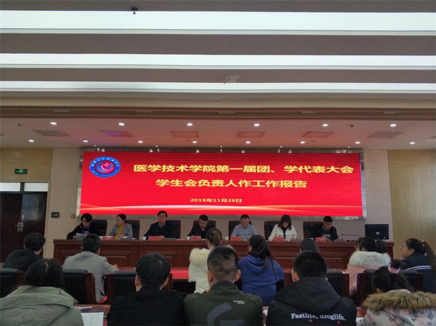 根据《中国共产主义青年团章程》的规定和学校党委的安排医学技术学院于11月26日下午2:30在学校办公楼8楼会议室召开了第一届团员、学生会代表大会。副校长黄刚、医学技术学院院长张志钢、党总支副书记郭艳玲等老师以及255名团学代表参加了会议。会议由党总支书记王义安主持。