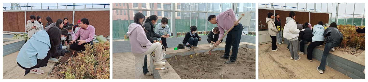 同学们以小组为单位,积极投入到种植活动中。大家挥锹铲土,播撒种子,浇水灌溉,分工明确,配合默契,每一个环节都一丝不苟。经过大家辛勤劳作,将承载着药学院师生对绿色生活的向往和对未来的期许种子播撒在土壤中。大家用双手种下绿色,用实际行动诠释“绿水青山就是金山银山”的信念,让青春在奋斗中绽放绿色光芒!