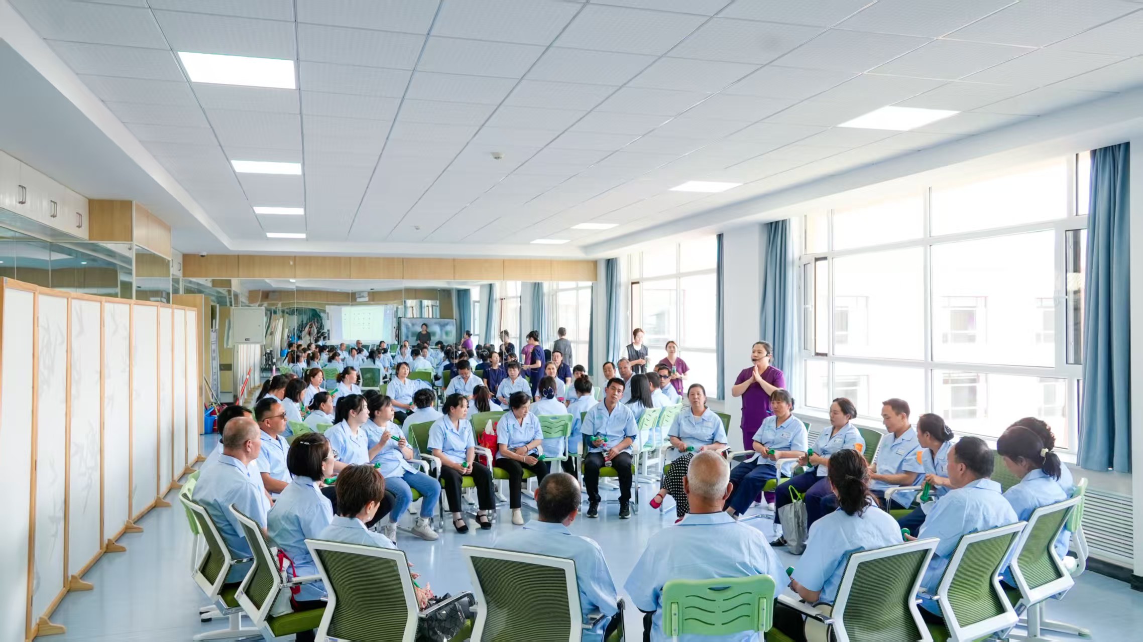 开班仪式后,培训班在护理学院老年护理实训中心开展首场“康乐活动”专题课程。授课教师为学员讲解如何设计适合老年人的娱乐康复活动,促进身心健康,学员积极参与互动。随后,全体学员参观护理学院实训基地。实训基地配备模拟病房、急救训练室、老年护理实训室等先进设施,为学员提供真实专业学习环境。在带教老师指导下,学员观摩标准化护理操作流程并体验实训项目,深化理论知识,提升实践能力。
