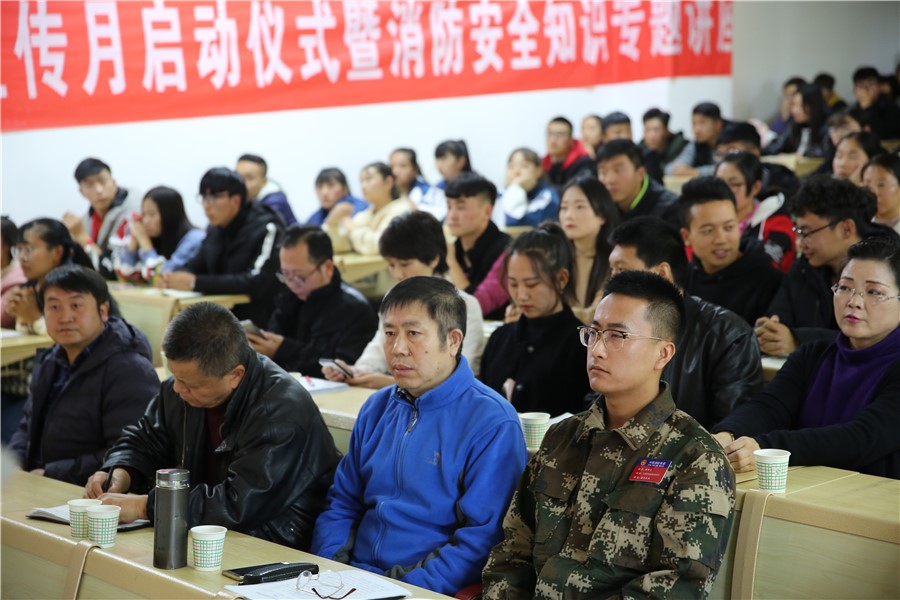 时值冬日,风干物燥,正是火灾的多发季节。为了增强广大教职员工的消防安全防火意识,普及消防安全知识,增强应对突发事件的能力,有效消除校园火灾隐患,保护师生生命财产安全,构建平安校园,11月8日下午,威廉希尔中文网站“119”消防安全宣传月系列活动启动仪式在学院2号教学楼阶梯教室举行。此次活动由保卫处方凌主持,李银刚副校长作了动员讲话,兰州新区消防支队防火处杨筠文工程师作了防火专题讲座。保卫处、学生处、部分武警官兵、2018级新生班主任、新生班委及宿舍管理员共200余人参加活动。