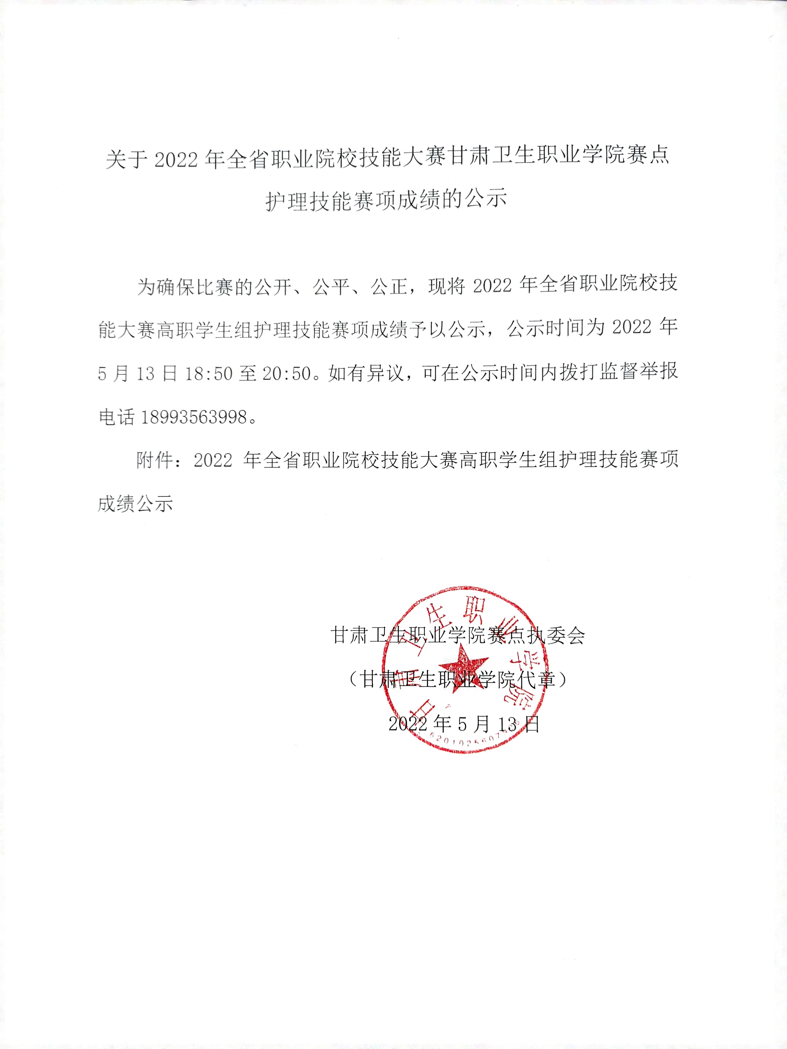 关于2022年全省职业院校技能大赛威廉希尔中文网站赛点护理技能赛项成绩的公示
