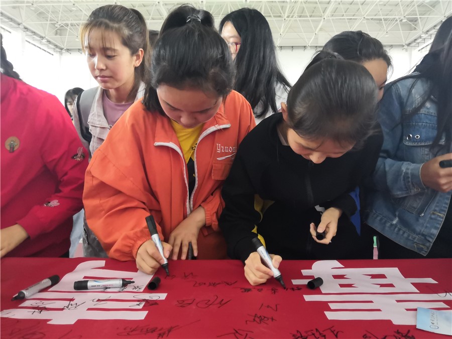 “珍爱生命,远离毒品!健康生活,无毒青春!坚决与毒品作斗争!从我做起,以抵制毒品为荣,以吸毒贩毒为耻!”,活动在全校师生庄严的宣誓中拉开了帷幕。现场师生们积极响应,自愿加入禁毒志愿者行列,并在横幅上签下了自己的名字。