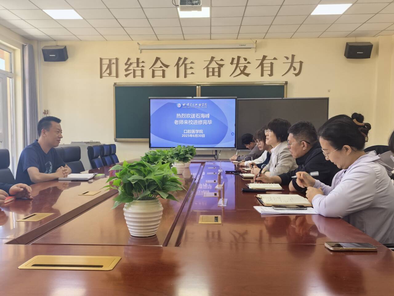 6月30日上午,口腔医学院为天水市卫生学校进修教师石海峰举行欢送座谈会。学院领导班子成员、口腔医学技术教研室专职教师及实验员共同出席,为石老师的进修学习画上圆满句号。