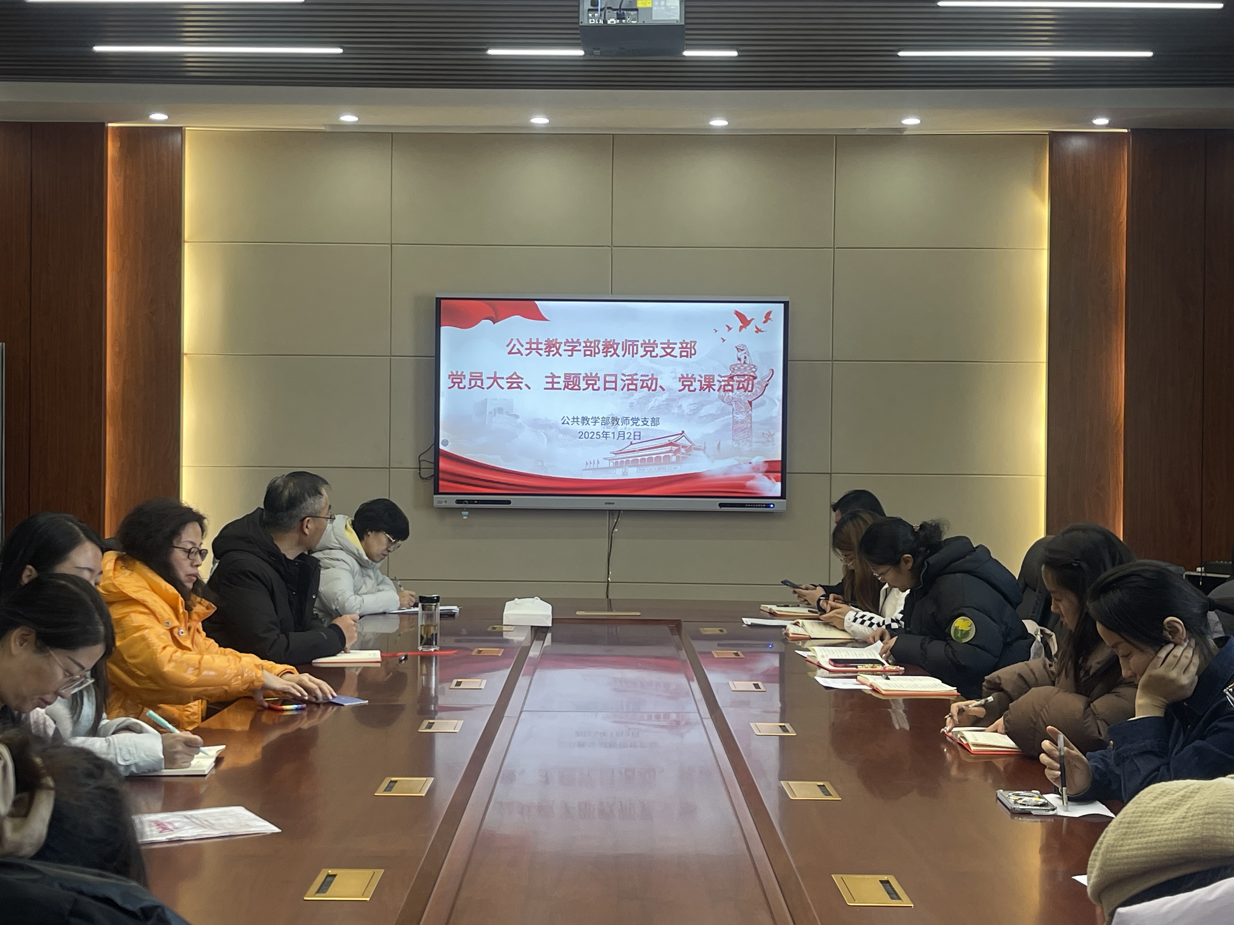 2025年1月2日中午,公共教学部教师党支部组织开展2025年第一季度党员大会、主题党日和党课活动,特别邀请邱文云副校长为支部党员讲授了一堂内容丰富、意义深刻的专题党课。公共教学部全体党员参与此次学习活动。