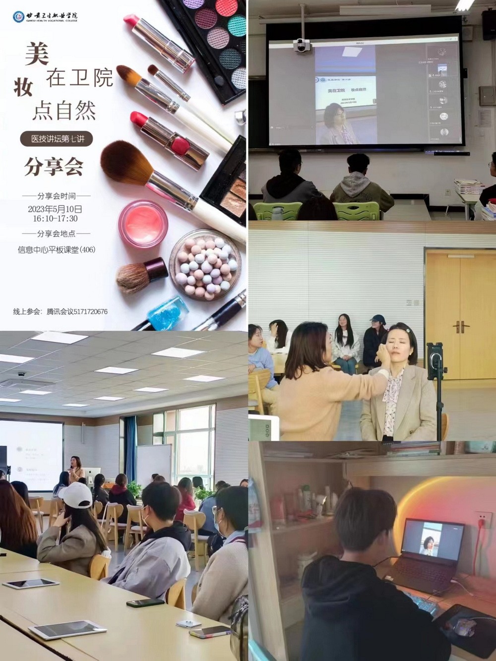 为贯彻落实德智体美劳全面发展的教育目标,丰富学生的业余生活,不断提升学生自信,帮助学生塑造良好形象,更好的为将来求职就业打好基础。5月10日下午,医学技术学院举行医技学坛第六讲——“美在卫院 妆点自然”主题分享活动。