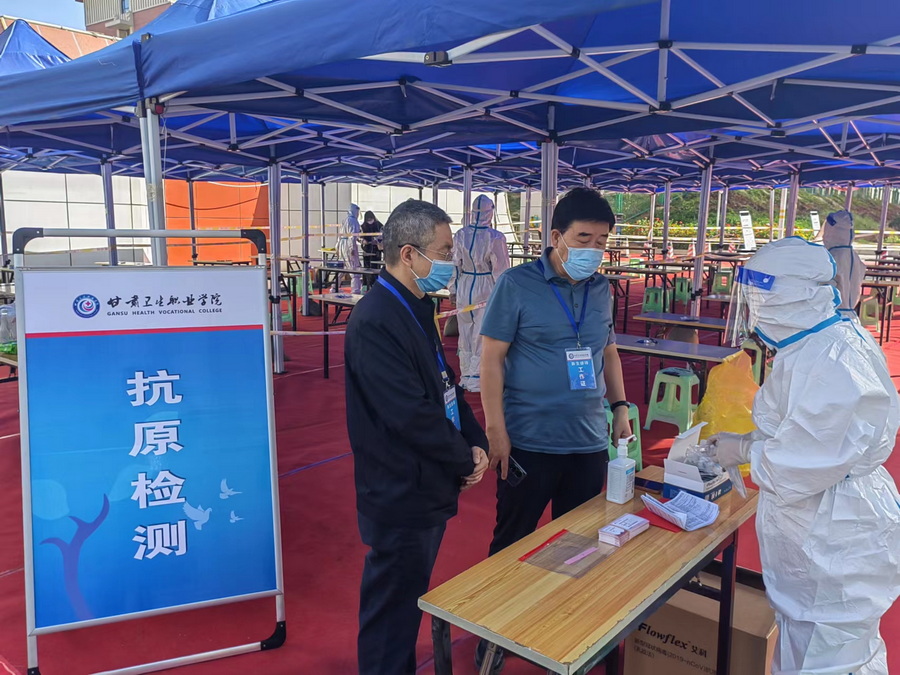 张弢处长认为,甘肃卫生职业学院具有良好的办学基础,专业建设功底扎实,社会认可度高,学校领导班子对安全稳定、疫情防控、线上教学、开学复学及其他专项工作都高度重视、措施得力、统筹推进,对相关工作能够及时研究、多次部署,细化措施、完善方案,工作成效显著,值得肯定。张弢处长强调,学校要进一步强化党建引领作用,把加强党的建设贯穿于办学治校的各个方面,统筹抓好学校高质量发展和安全稳定工作。