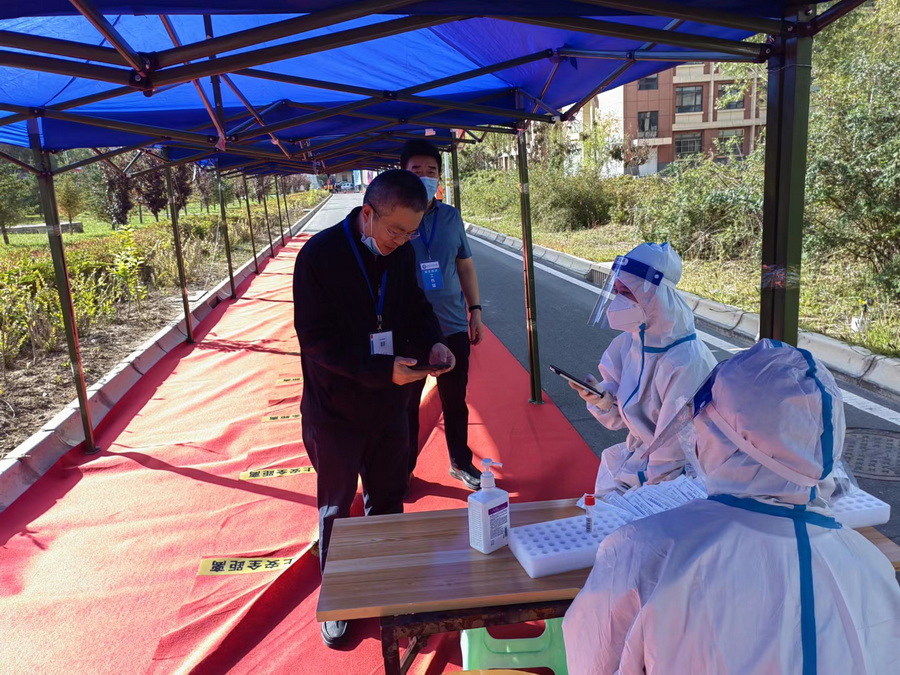 张弢处长先后来到学校南门口、党员先锋岗以及新生返校报到点,实地走访察看学校疫情防控和新生报到工作情况,对学校疫情防控、学生返校接待等工作进行了仔细询问和了解,并查看了相关资料。