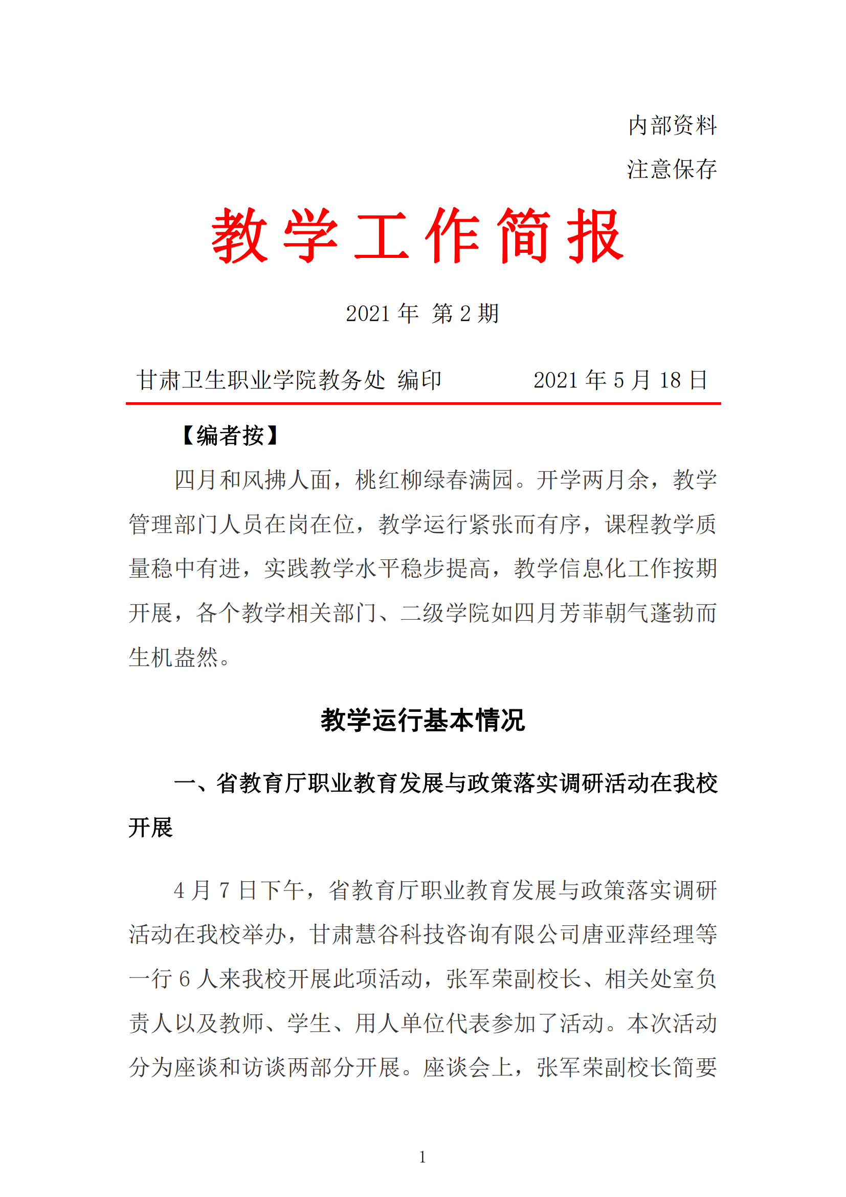 2021年4月份教学工作简报