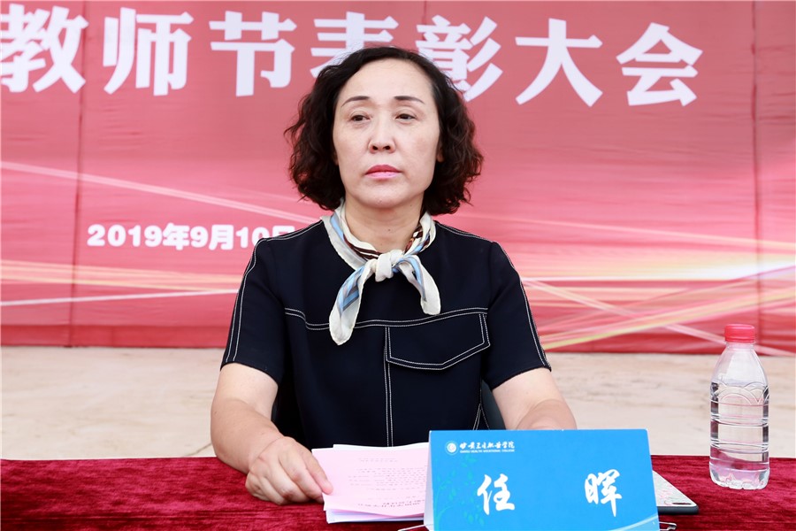 大会在庄严肃穆的升国旗仪式中开场。任晖校长在大会上致辞,她代表学校领导班子向满怀理想抱负选择了学校的4000多名新生表示衷心的祝贺和热烈的欢迎,向默默耕耘、无私奉献、恪尽职守的全校教职员工致以节日的问候和美好的祝福,向受到表彰的先进集体和个人表示热烈的祝贺。在庆祝第35个教师节之时,任晖校长对全体教师提出三点希望:一是要追求理想,做好本职工作;二是要潜心教学,服务社会发展;三是要关爱学生,甘为良师益友。同时,她将“道德”、“励志”、“追求”、“担当” 、“勤学”5个关键词送给全体新生,表达出对同学们的殷切期望。