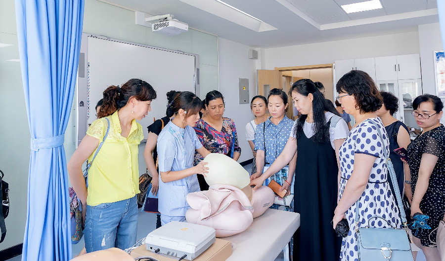 在开展的护理技能操作规范化示教活动中,威廉希尔官网今年参加全国护理技能大赛并获奖的常菲菲和杨国静两名同学分别展示了静脉留置针输液和心肺复苏项目,她们精湛的技艺、娴熟的操作体现了学校护理专业学生良好的综合素质,给与会人员留下了深刻的印象。在参观了学校新建成的临床护理实训中心后,与会专家和主任们对威廉希尔官网良好的教学环境、现代的信息化教学手段及完善的实训设备啧啧称赞。
