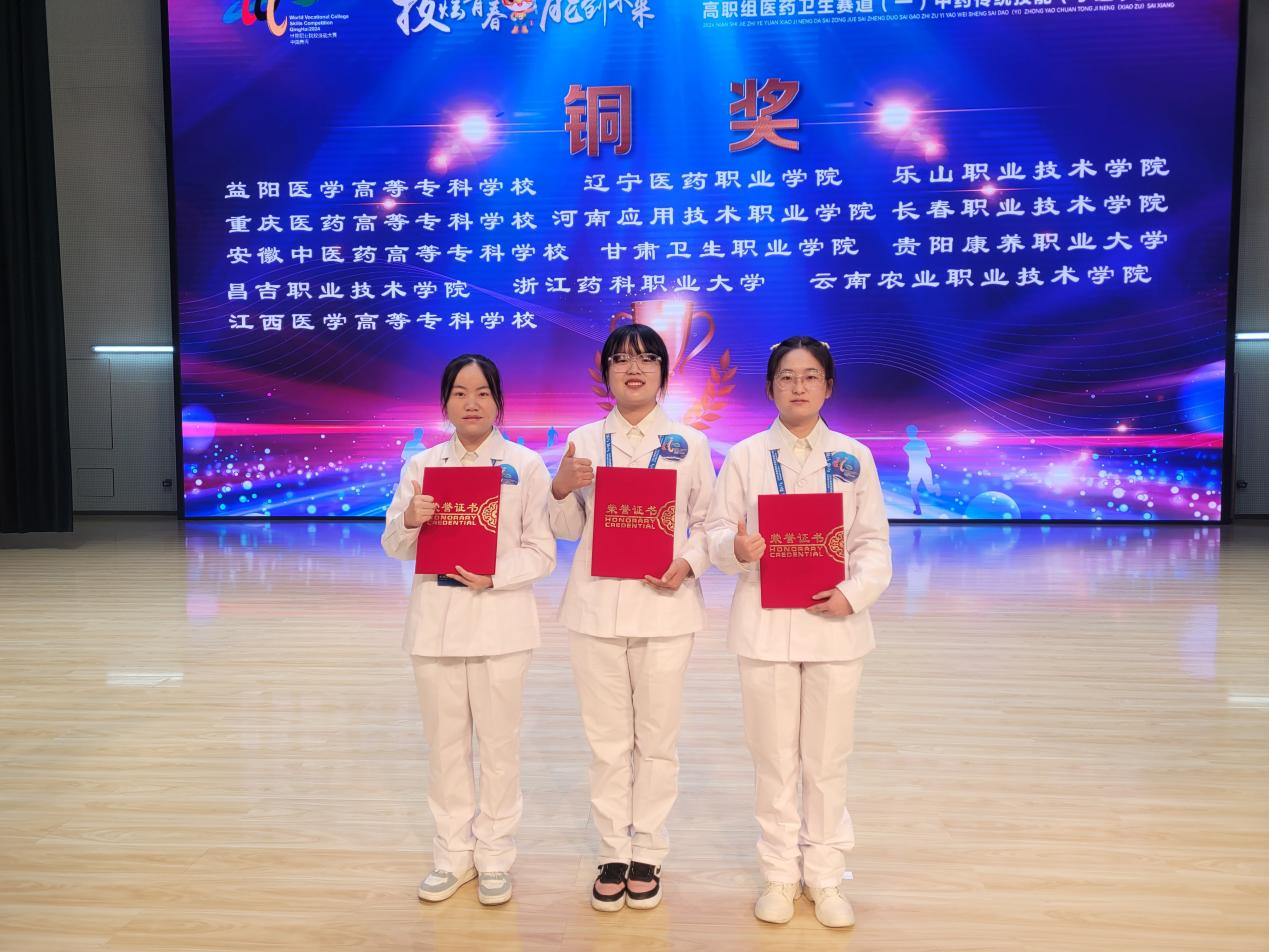 10月28日至11月1日,2024年世界职业院校技能大赛总决赛医药卫生赛道一(中药传统技能赛项)争夺赛在青海卫生职业技术学院成功举办。来自全国各地的55支优秀参赛队,共190名参赛选手同台竞技。威廉希尔官网药学院选派由陈方圆、宋爽老师指导的丁芳、贾敏、肖晓童团队参赛,以平行组第3名的成绩荣获铜奖。