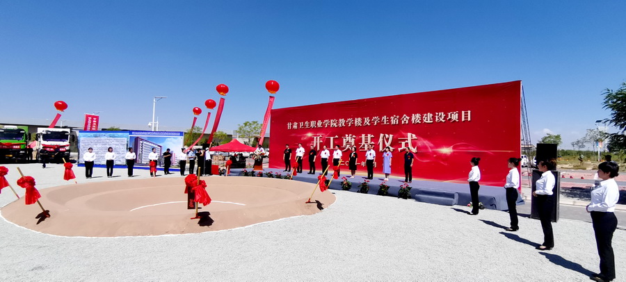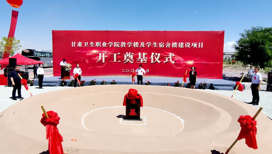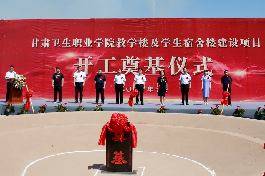 7月18日上午11时30分,甘肃卫生职业学院教学楼及学生宿舍楼建设项目在学校建设预留地隆重举行开工奠基仪式,现场人头攒动、气氛热烈。学校党委书记姜德民、校长任晖、党委副书记刘生肸、副校长毕效武、副校长张军荣,中铁二十一局集团第二工程有限公司董事长张发祥、中土大地国际建筑设计有限公司院长吴培成、甘肃金建工程建设监理有限责任公司总经理曾万成、河南省交通规划勘查设计研究院股份有限公司岩土分院副总经理张永雨出席奠基仪式,学校副处级干部、中层干部和各参建单位的代表、工作人员等260余人参加了奠基仪式,奠基仪式由副校长高博主持。