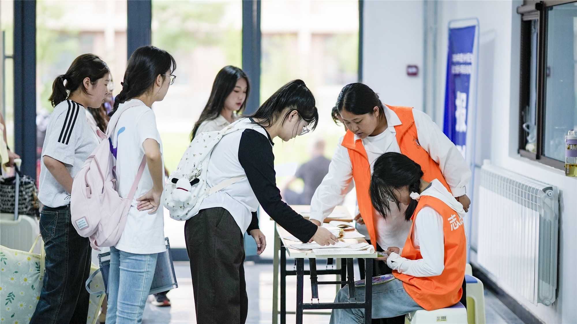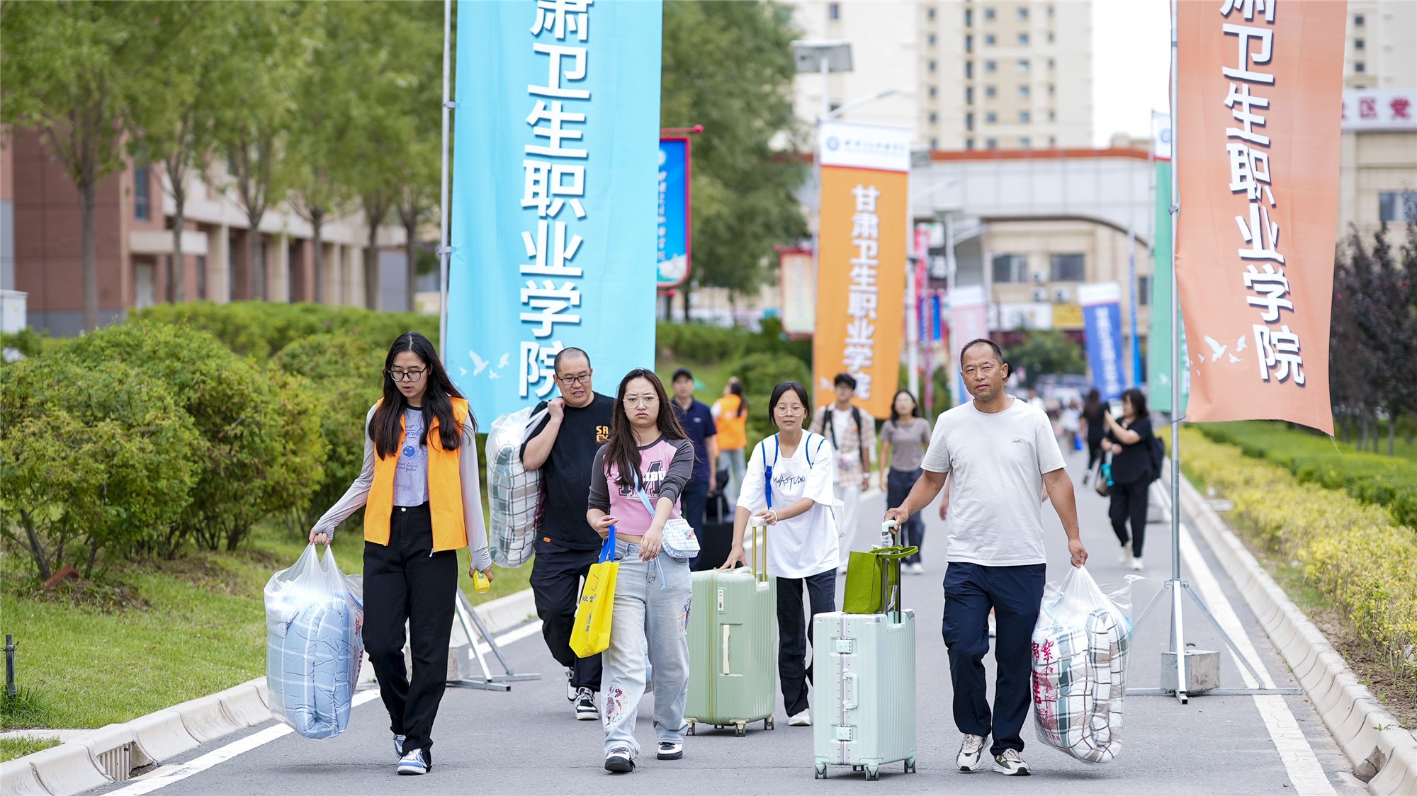 报到当天,学校专程在兰州火车东站、西客站、飞机场、职教园区客运中心设置了校外迎新站点,接待新生和家长,并安排大巴转运至职教园区学校报到点。