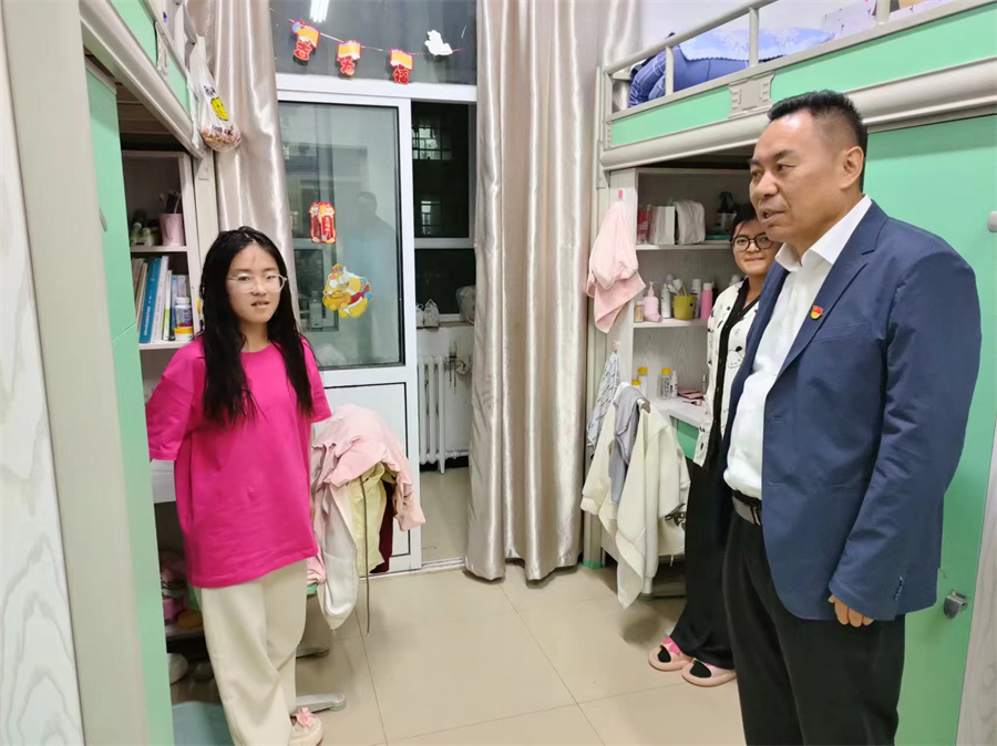 包磊表示,看到同学们把宿舍打扫得干干净净,我很高兴,对你们提出表扬,你们的生活习惯很好,精神状态良好,大家要向你们学习。他勉励同学们在学习上要始终保持昂扬向上的劲头,把握好大学美好时光,焕发青春活力,认真学习专业知识;在生活上要珍惜舍友缘分和情谊,相互帮助、互相关爱,注重创建健康向上宿舍生活环境,营造优良的风气,大力弘扬和践行医者誓言,成为德智体美劳全面发展的时代新人。