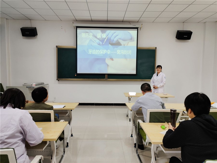 活动开始后,三位青年教师精神饱满、方法各异,依次完成了选题为《无牙颌模型》《牙齿的保护伞---窝沟封闭》《肝疾病超声诊断---肝炎后肝硬化》的课堂讲授。随后又根据《第五届甘肃省高校青年教师教学竞赛实施方案》的要求,对参赛的教学设计、教学反思等内容以说课的形式进行了介绍。