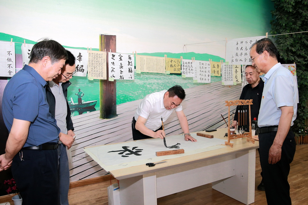 前来参观的师生络绎不绝,优秀的艺术作品吸引广大师生长时间驻足观赏。此次展览充分展现了威廉希尔官网广大师生员工的艺术才华和积极向上的精神风貌,也为广大师生提供了一个相互学习、相互交流的舞台。党委书记包磊、副校长高博等学校领导和老师还应邀在现场挥毫泼墨,进行了书法创作表演,在场师生无不为这些老师们深厚的艺术造诣所折服,精美的作品赢得师生们连声赞叹和热烈掌声。多位老师还为现场的同学们进行了书画摄影知识讲解。