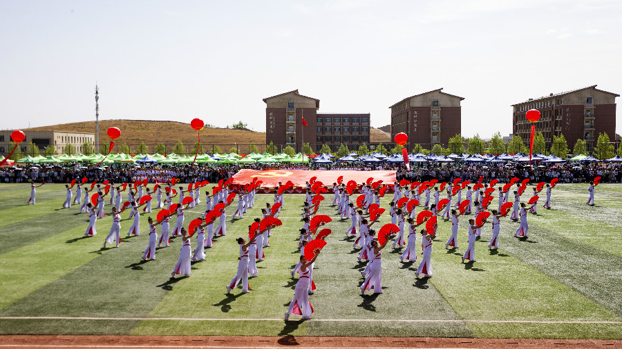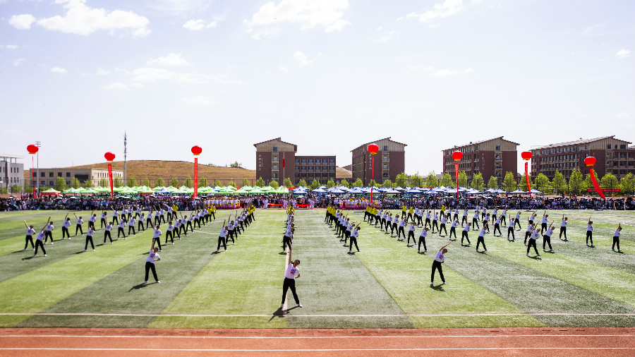 随后,校团委、工会和各二级学院带来了精彩的节目表演。教师和学生团体分别用热情和活力展示了学校今年新编排的课间操、工间操,舞蹈《绽放》《礼赞青春 舞彩飞扬》《灯火里的中国》各具特色,诠释了生命的灵动与青春的激情,藏族学生们用富有浓郁民族特色的舞蹈《吉祥欢歌》向大家送上诚挚的祝福,别出心裁的腰鼓表演《铿锵鼓点 耀我中华》鼓声铿锵有力,赢得阵阵掌声喝彩。