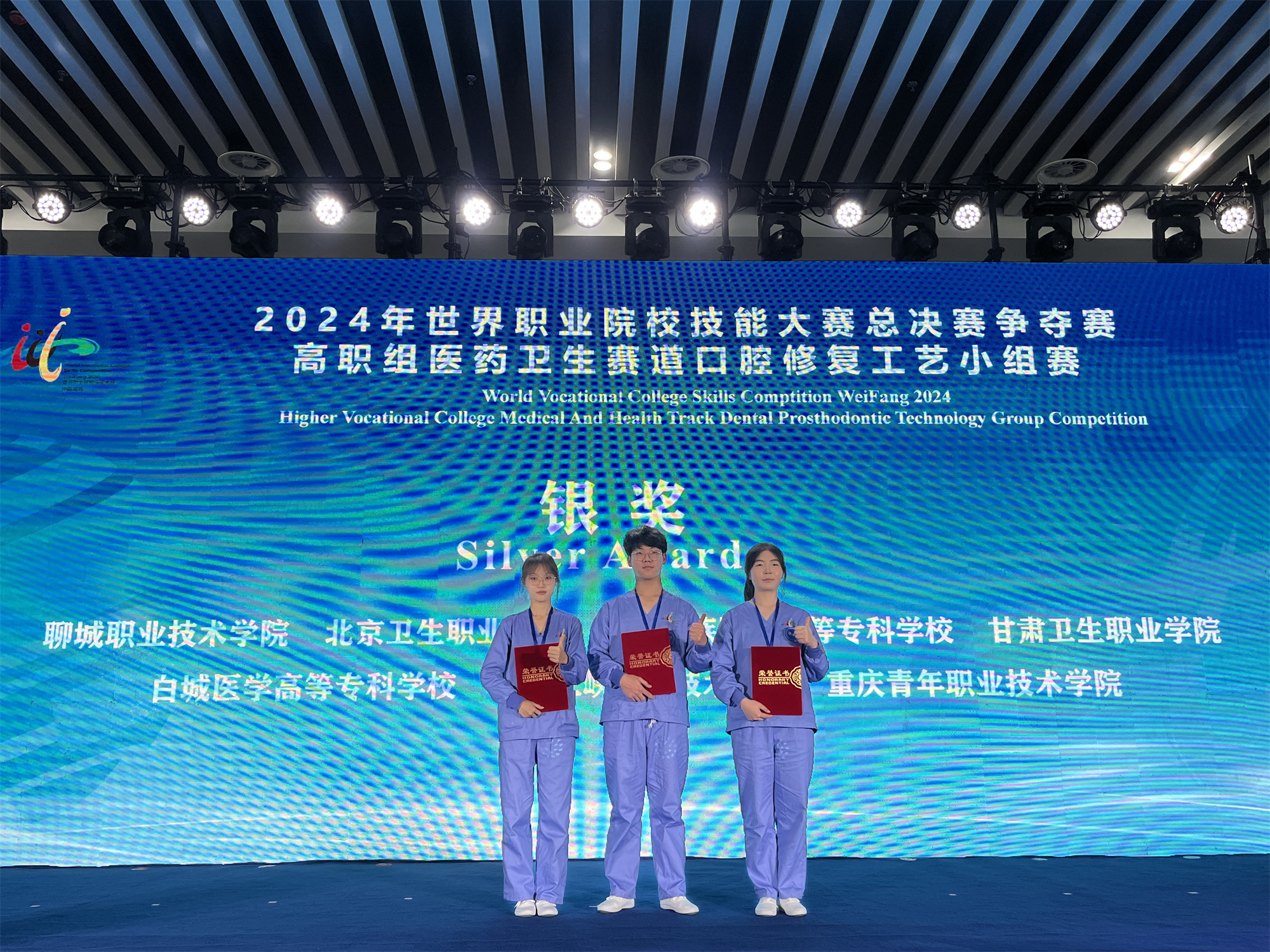 10月29日至30日,2024年世界职业院校技能大赛总决赛医药卫生赛道三(口腔修复工艺赛项)争夺赛在山东潍坊高铁北站综合体成功举办。来自全国各地47支优秀参赛队,共171名参赛选手同台竞技。威廉希尔官网参赛选手郭瑩春、刘芳银、尚天路以平行组第3名总分620的成绩荣获银奖。