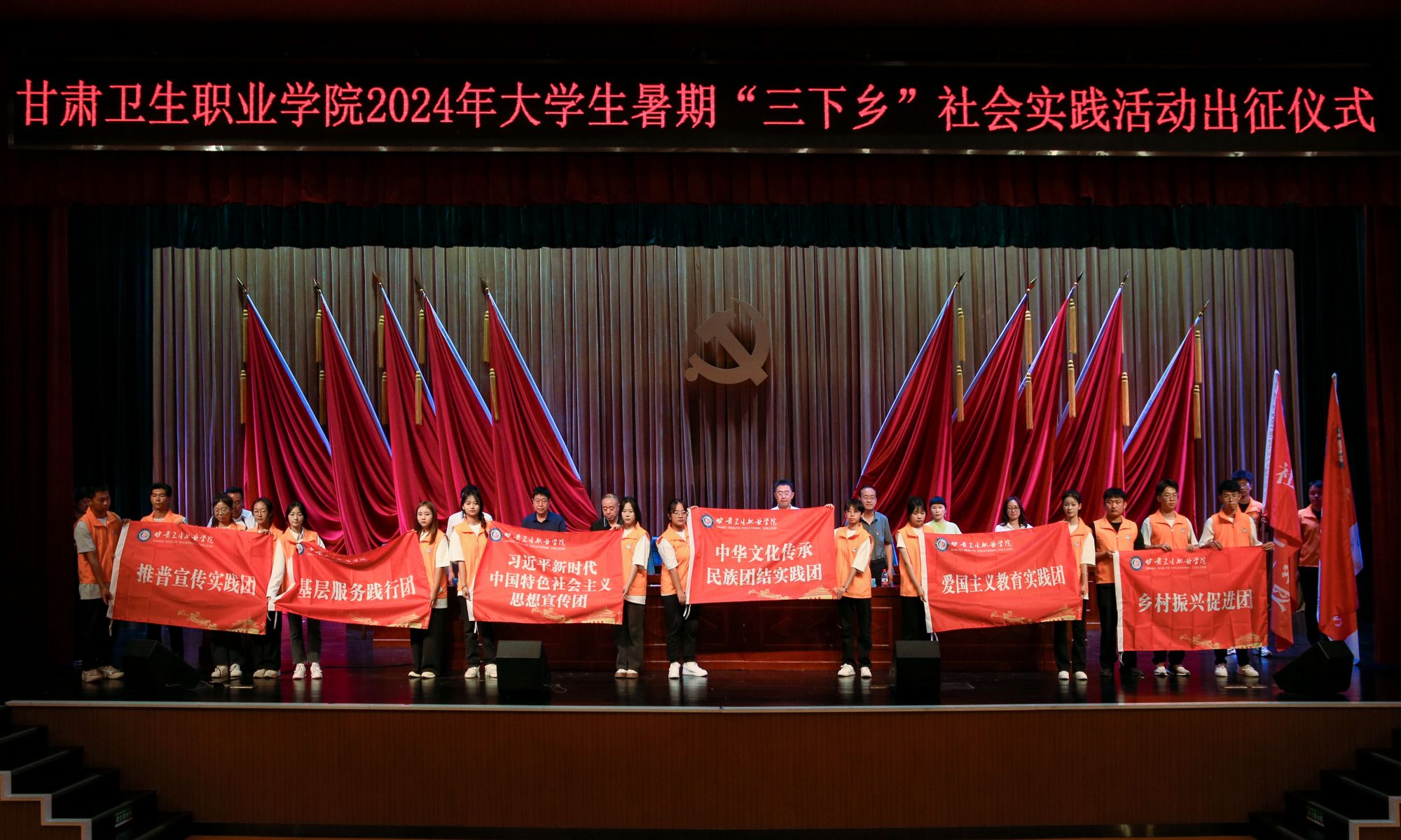 7月5日下午,威廉希尔中文网站2024年大学生志愿者暑期文化科技卫生“三下乡”社会实践活动出征仪式在职教园区共享区报告厅举行。学校党委书记包磊,党委副书记、校长王建成,党委副书记毕效武,纪委书记刘斌,副校长高博、张军荣、邱文云、杨频,以及校团委、学生处、附属医院、各二级学院相关负责人及工作人员,“三下乡”社会实践活动全体志愿者等50余人参加了本次出征仪式。
