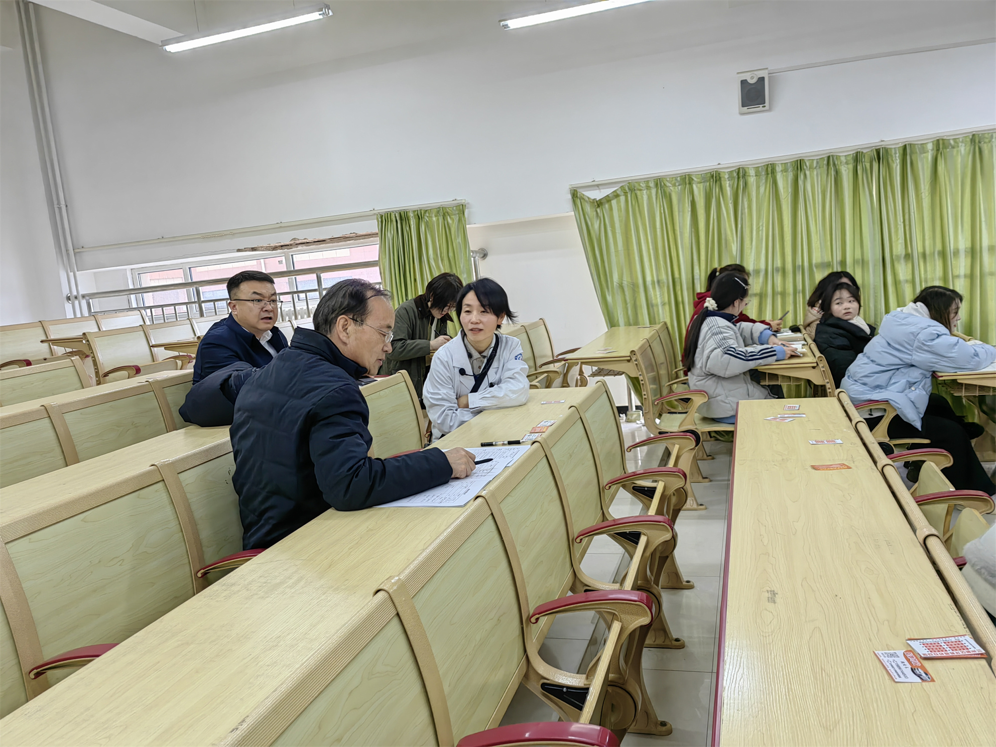 各教学督导组深入课堂,观察教师的授课状态、教学方法、教学基本功、教学资料准备,学生的课堂反应、参与度,并给予反馈和评估。课后,与师生进行交流,询问了教学计划的制定、教学内容的准备以及教学过程中遇到的困难,并针对教师提出的问题给予建议与指导。倾听学生对课程的感受、学习需求以及对教学的期望,鼓励学生积极参与课堂,主动与教师沟通反馈学习情况。