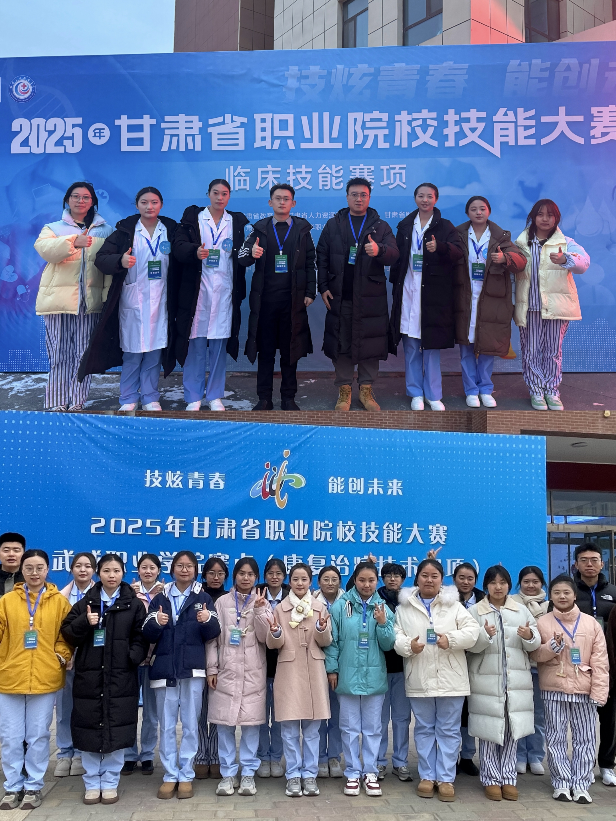 在2025年甘肃省职业院校技能大赛中,临床医学院派出10支队伍参加临床技能和康复治疗技术赛项,最终斩获1金、1银、5铜。
