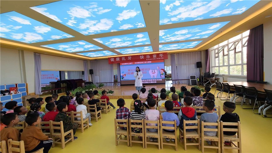 在全国第32个爱牙日来临之际,为宣传和普及口腔健康保健知识,提高医学技术学院师生社会服务能力,根据《医学技术学院关于开展“全国爱牙日”活动安排》,近日,医学技术学院与兰州新区西岔园区文曲社区合作,由口腔医学系副主任郭艳玲带领口腔医学系师生赴兰州新区第三幼儿园,开展了爱牙日主题活动。