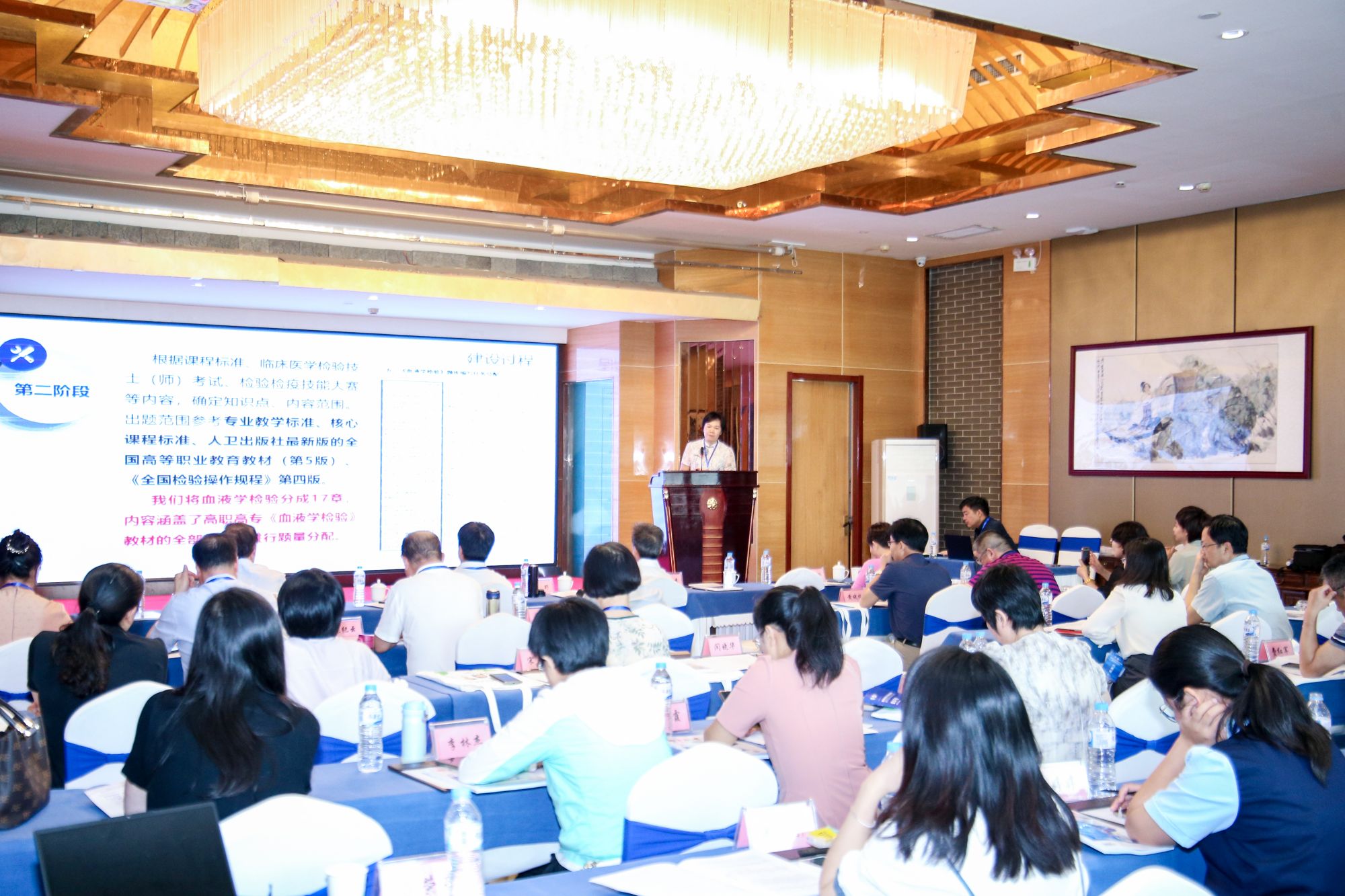会议期间,来自金华职业大学、贵阳康养职业大学、天津医学高等专科学校、泉州医学高等专科学校、漳州卫生职业学院、苏州卫生职业技术学院、信阳职业技术学院、山东医学高等专科学校、浙江省人民医院、临沂市人民医院、重庆华教科技有限公司等几十余所单位的代表听取了高职医学检验技术专业题库建设情况的汇报,提出了进一步完善建设的建议和意见;在专题论坛活动中,全国卫生健康行指委教学质量评价专委会副主任委员胡野、浙江省人民医院检验中心细胞学实验室主任吴茅分别做了题为《高职教学资源数字化转型与专业群建设的耦联及生态重塑的策略》《体液细胞临床现状与教育开发价值》的专题讲座,与会人员紧紧围绕“深化现代职业教育体系建设改革,推进医学检验技术专业发展与人才培养”的主题,展开了积极热烈的发言和讨论,共同为推动全国医学检验技术专业职业教育改革发展建言献策。