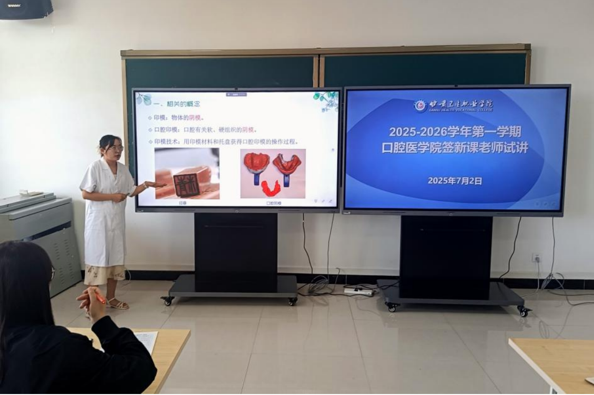 本次试讲由陈璇、张英英等六位老师分别对《口腔组织病理学》《口腔内科学》《口腔修复学》等七门专业课程进行试讲。试讲内容紧扣专业,结合临床案例,理论联系实际,条理清晰,表达规范,展现出良好的教学基本功和职业素养。试讲结束后,评审组从教学设计、教学方法、教姿教态、课堂互动等多个方面对签新课程教师进行了现场评分,并提出了改进建议。