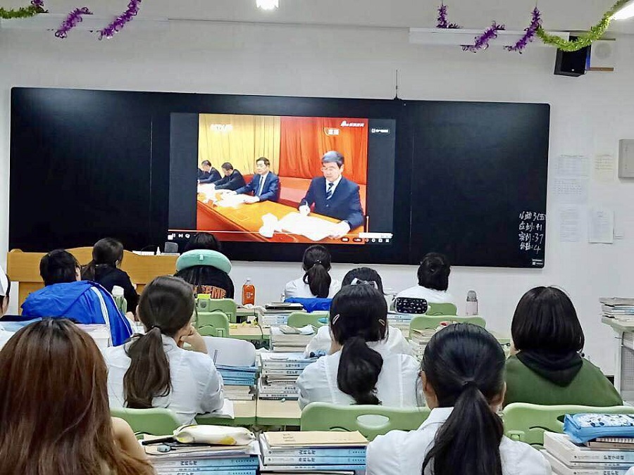 5月20日晚,在一号教学楼报告厅,100多名团委干部齐聚一堂,集中观看“纪念五四运动100周年大会”盛况;同一时间,在校各团支部也在组织团员集中观看“纪念五四运动100周年大会”视频,认真观看习总书记在五四运动100周年大会上的重要讲话。
