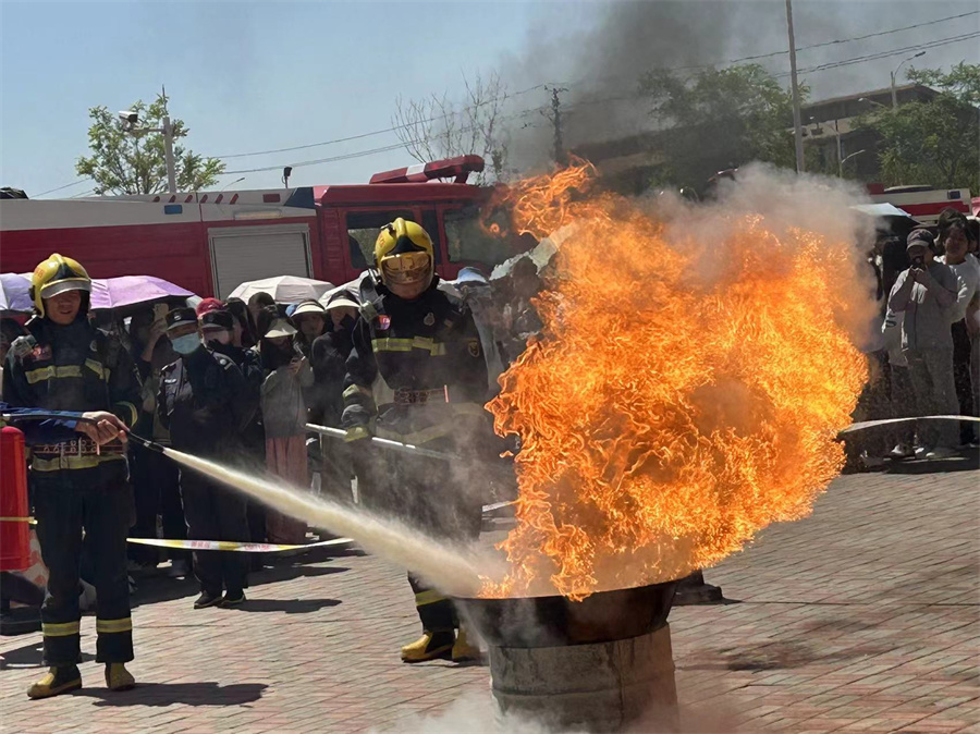 演示完毕后,消防官兵向在场师生详细地介绍了火灾的燃烧分类、火灾扑救的方法、灭火器与消火栓的使用方法、如何防火以及如何报警等相关知识,并指导学生进行现场灭火演示。