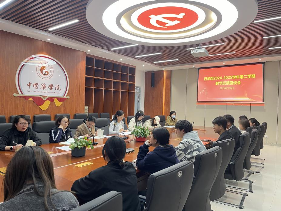 为进一步优化教风学风建设,精准把握学生学习动态与教学需求,5月8日,药学院组织召开2024-2025学年第二学期在校班级学生教学反馈座谈会。本次会议由副院长主持,院长、各教研室主任、教科研办公室全体工作人员及各班级学习委员齐聚一堂,共话教学相长新路径。