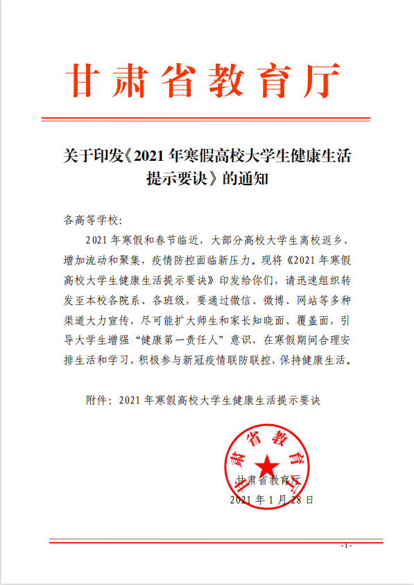 关于印发《2021年寒假高校大学生健康生活提示要诀》的通知