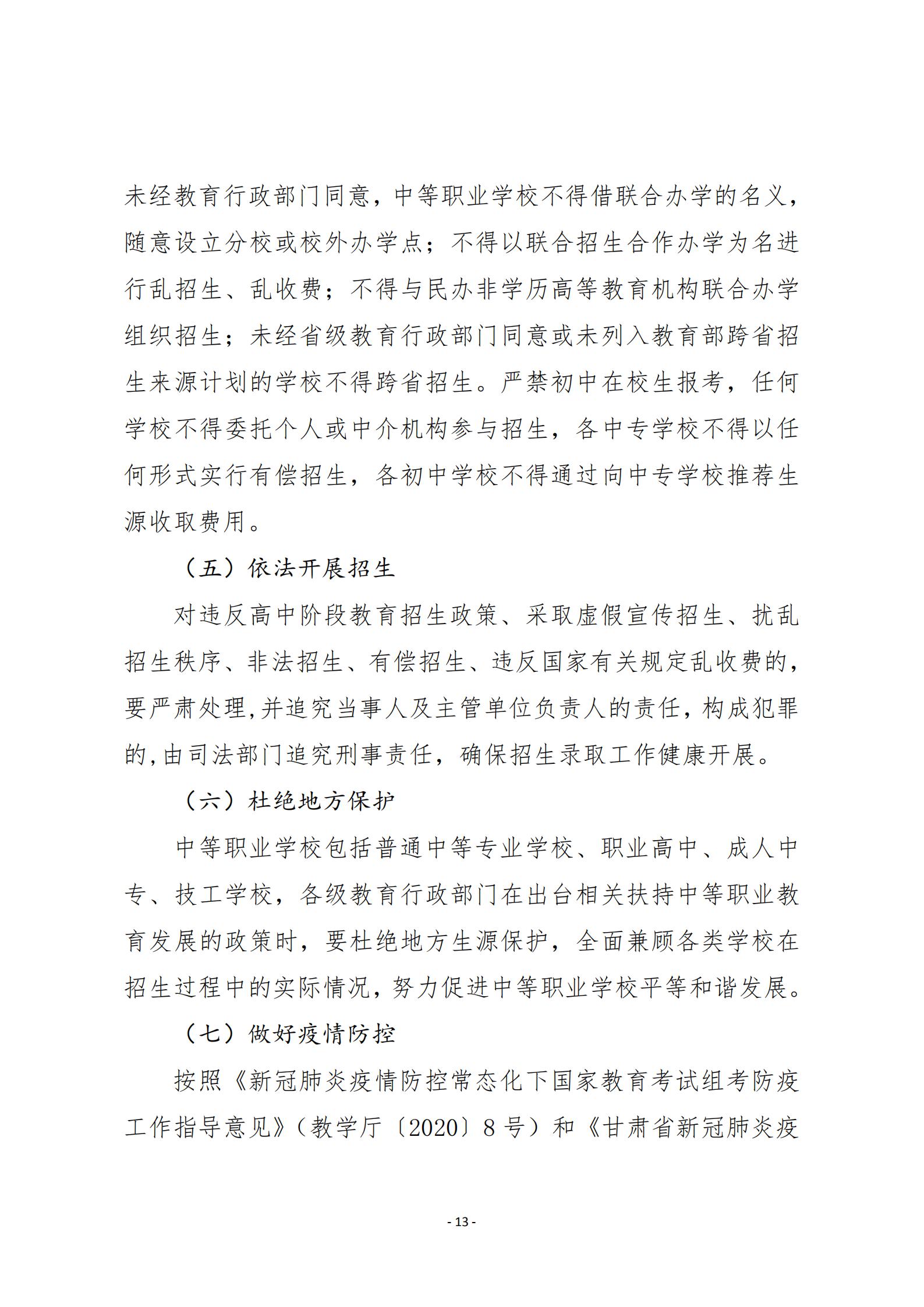 关于2020年甘肃省中等专业学校招生工作的通知[甘招委发26号]