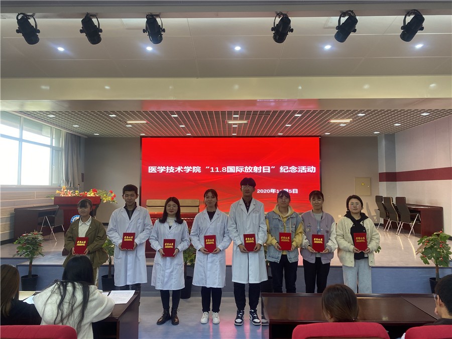 为了提高医学影像系学生的学习动力和对专业的热爱,强化对专业和未来岗位的认知,宣传医学影像人良好的精神风貌和社会责任,在“11·8国际放射日”来临之际,医学技术学院医学影像系组织开展了以“勤学苦练专业技能、勇担新时代影像人使命”为主题的纪念活动,并于11月5日在临床实训楼多功能厅举行了活动启动仪式,医学影像系全体师生近550人参加,仪式由2019级医学影像技术三年制15班学生秦聪聪主持。