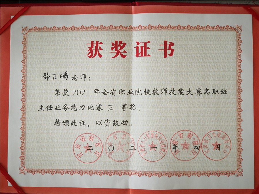 威廉希尔官网辅导员路正鹏老师在2021年全省职业院校教师技能大赛中喜获佳绩发布时间:2021-05-21 -