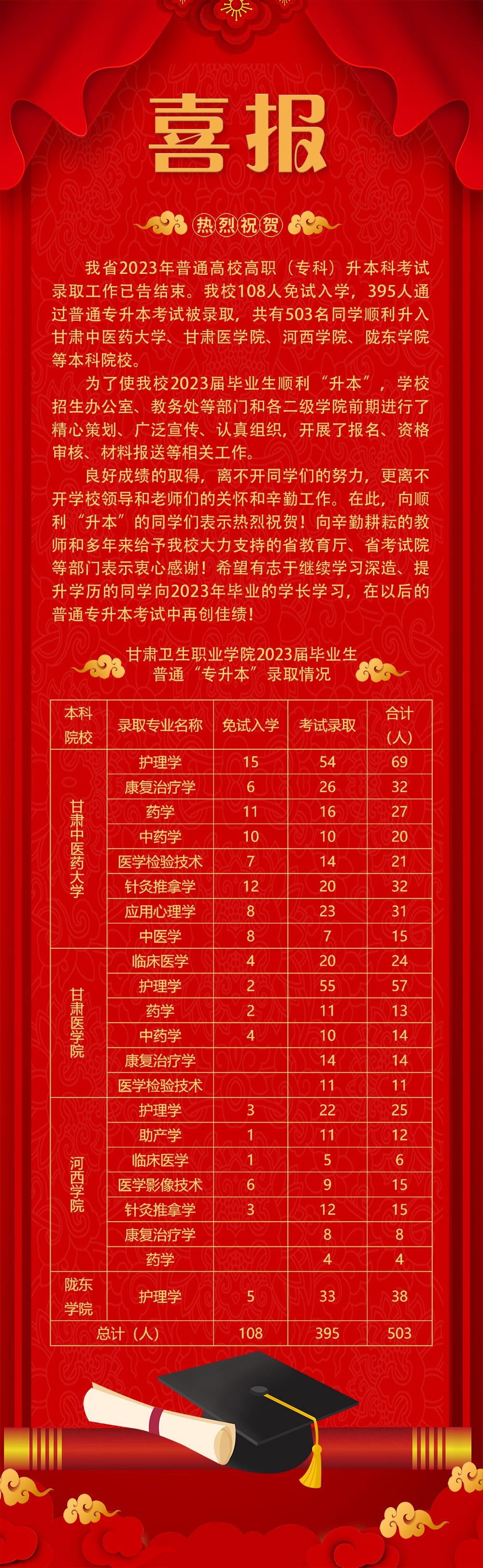 喜报 | 威廉希尔官网2023届毕业生在普通“专升本”招生录取中喜获佳绩发布时间:2023-06-15 -