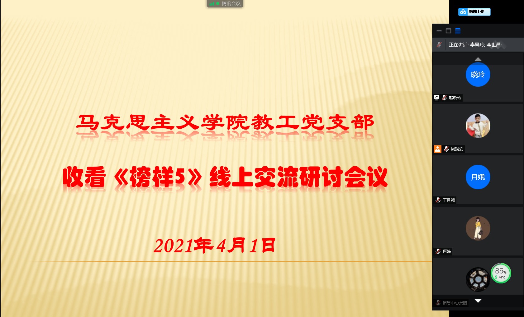 马克思主义学院教工党支部召开收看《榜样5》专题节目交流研讨会发布时间:2021-04-01 -