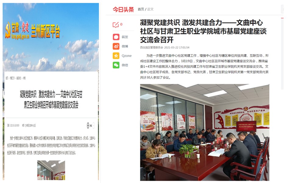 甘肃党建、今日头条平台报道威廉希尔官网机关第一党支部与文曲中心社区党支部举办基层党建座谈交流会发布时间:2021-04-02 -